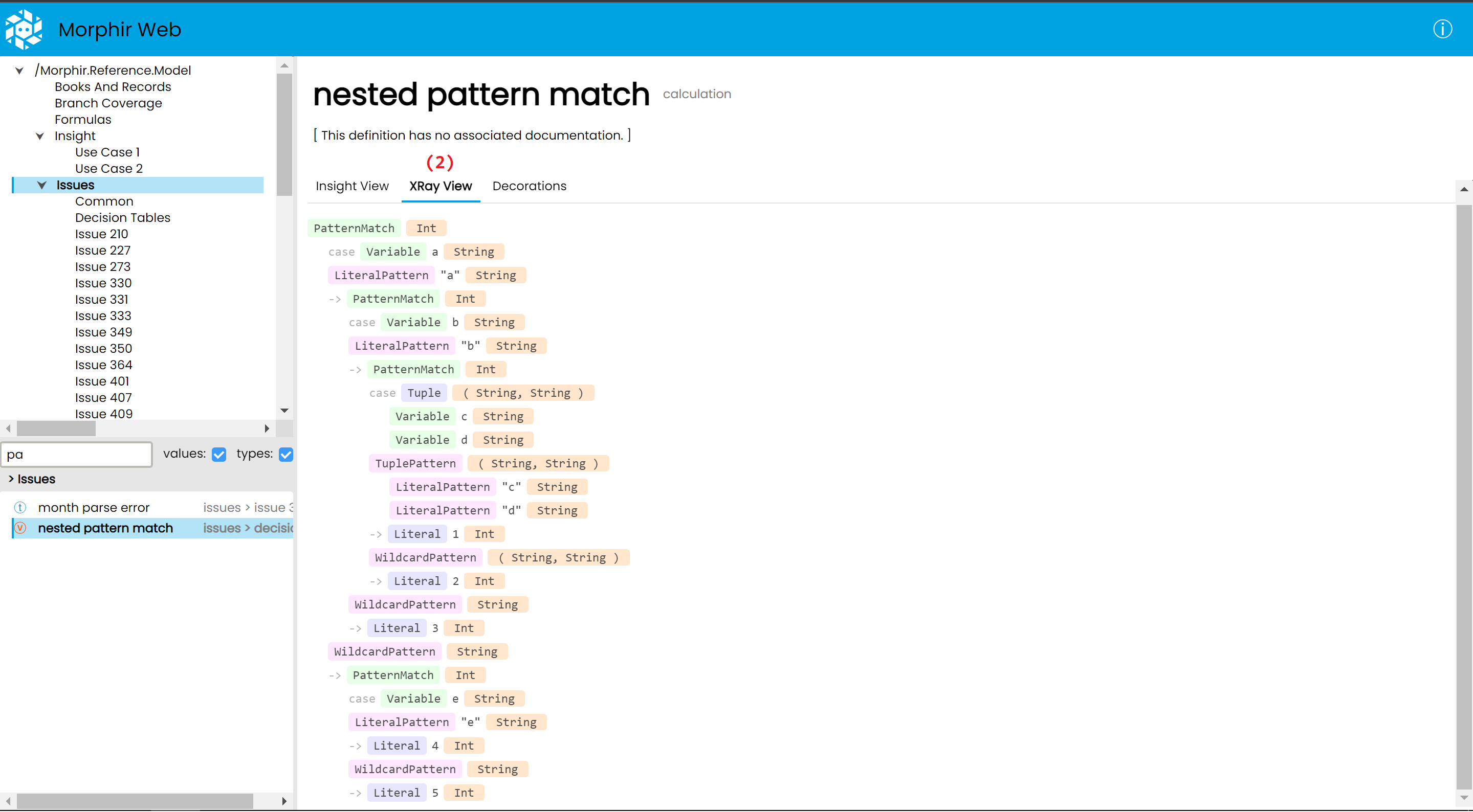 (2) The Xray view, which shows how a given definition is internally represented inside a Morphir model