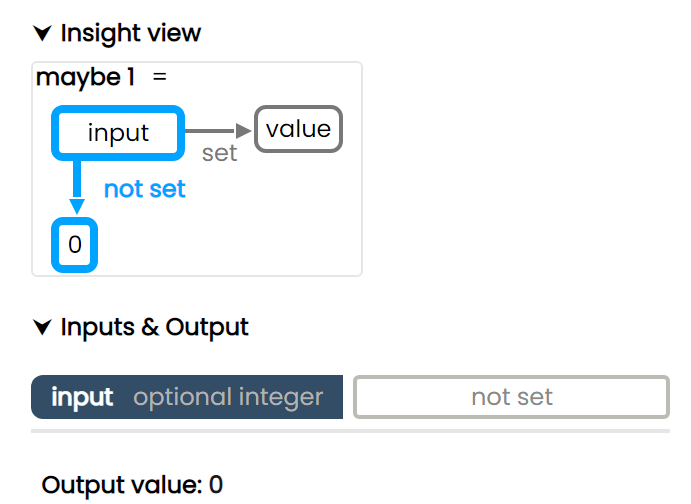 In the below example, the output defaults to 0 if the input is missing. Otherwise it returns the value of the input.