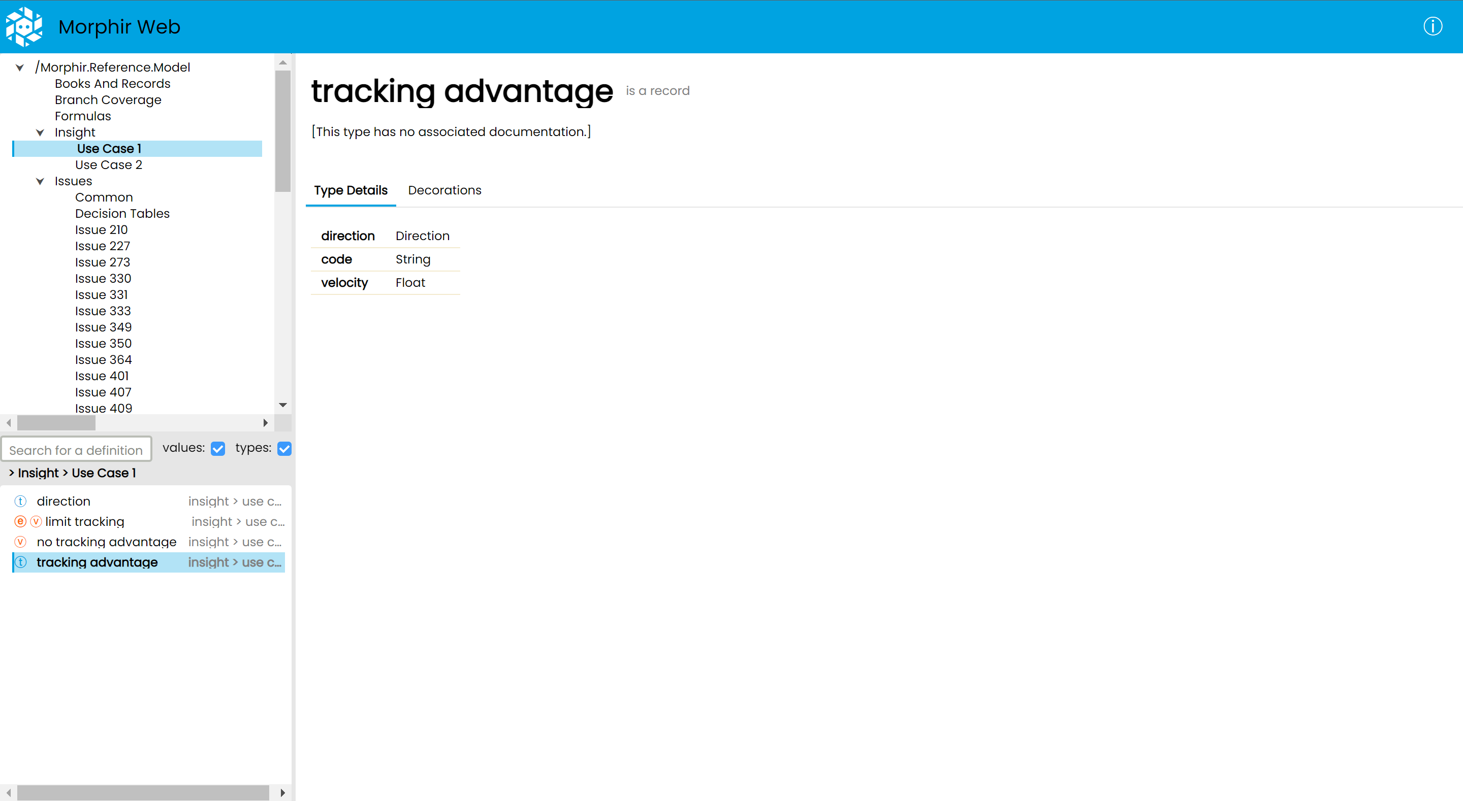 The Insight view aims to provide the user with a user friendly, understandable, interactive visualisation of a given Morphir definition.